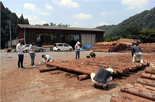 応力波を用いた丸太材のヤング率測定(豊田森林組合)