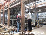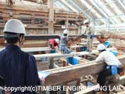 我が国には古来より現在に至るまで木材を構造材料として利用してきた長い歴史があり,特に伝統的構法による建築物には多くの寺院をはじめとする木造古建築がある.これらの建築物には,台風・地震など幾多の災害を乗り越えて現代までその姿を伝えているものが多く,我が国が世界に誇ることのできる文化的財産である.当研究室では,環境保全と伝統文化の伝承の両観点から主に古民家・古寺院を対象として,伝統的構法を用いた建築物において古来より受け継がれてきた改修システムに,現代人が会得している科学的な力学評価を組み合わせ,より安全性の高い確かなシステムとして次世代へ引き継ぐための取り組みを行っている.これまでに,伝統的木造建築物を保存・継承し,そこに使われている古材を継続使用するための可否判断に関して,実大材の強度性能を,応力波を用いて推定したヤング係数を基に,その曲げ強度を推定・評価する方法を提案してきた.これによれば,古材の強度的性状を,解体前の構造体のままの状態で非破壊的かつ簡便に評価することができる.形状が不定形で欠損等も含まれる古材の強度性能は,誤差を含む可能性は免れないが,次のようにして推定することができる.材は,解体前の建物に組み込まれた状態,または解体後の地上に降ろされた状態のいずれであっても構わない.