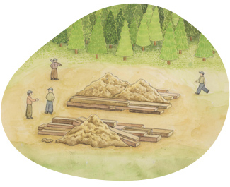 - とにかく現場で=森へ、街へと現場に足を運び、生の声を聴き、現実に起きている問題や動きを肌で感じてもらいながら、木の使い方を考えています。 現場本位のPDCAサイクルを通じて、企画から実施、改善までのトータルな学習機会を提供しています。