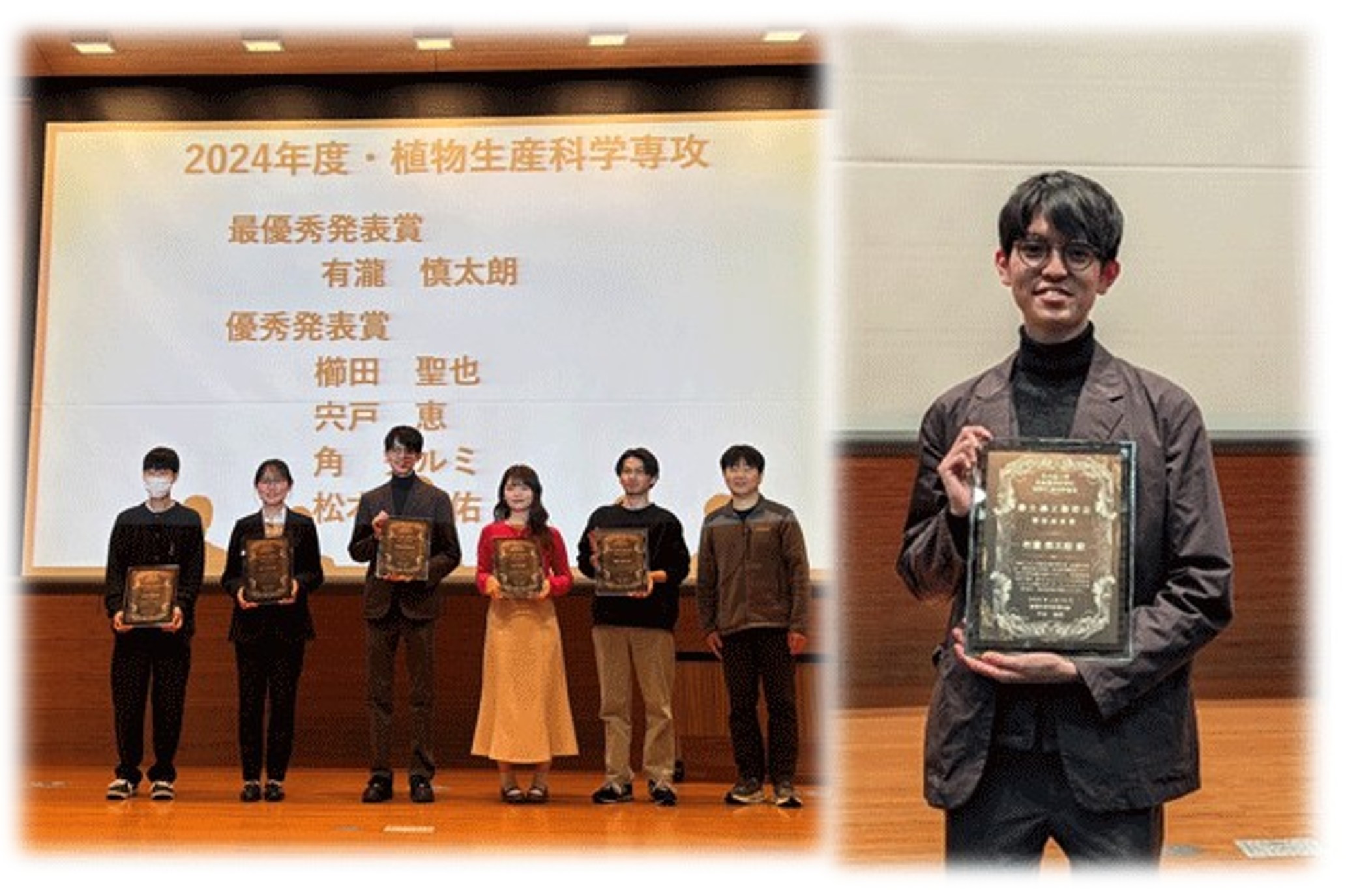 M2の有瀧慎太朗君が植物生産科学専攻の修士論文発表会で “最優秀発表賞”を受賞しました!